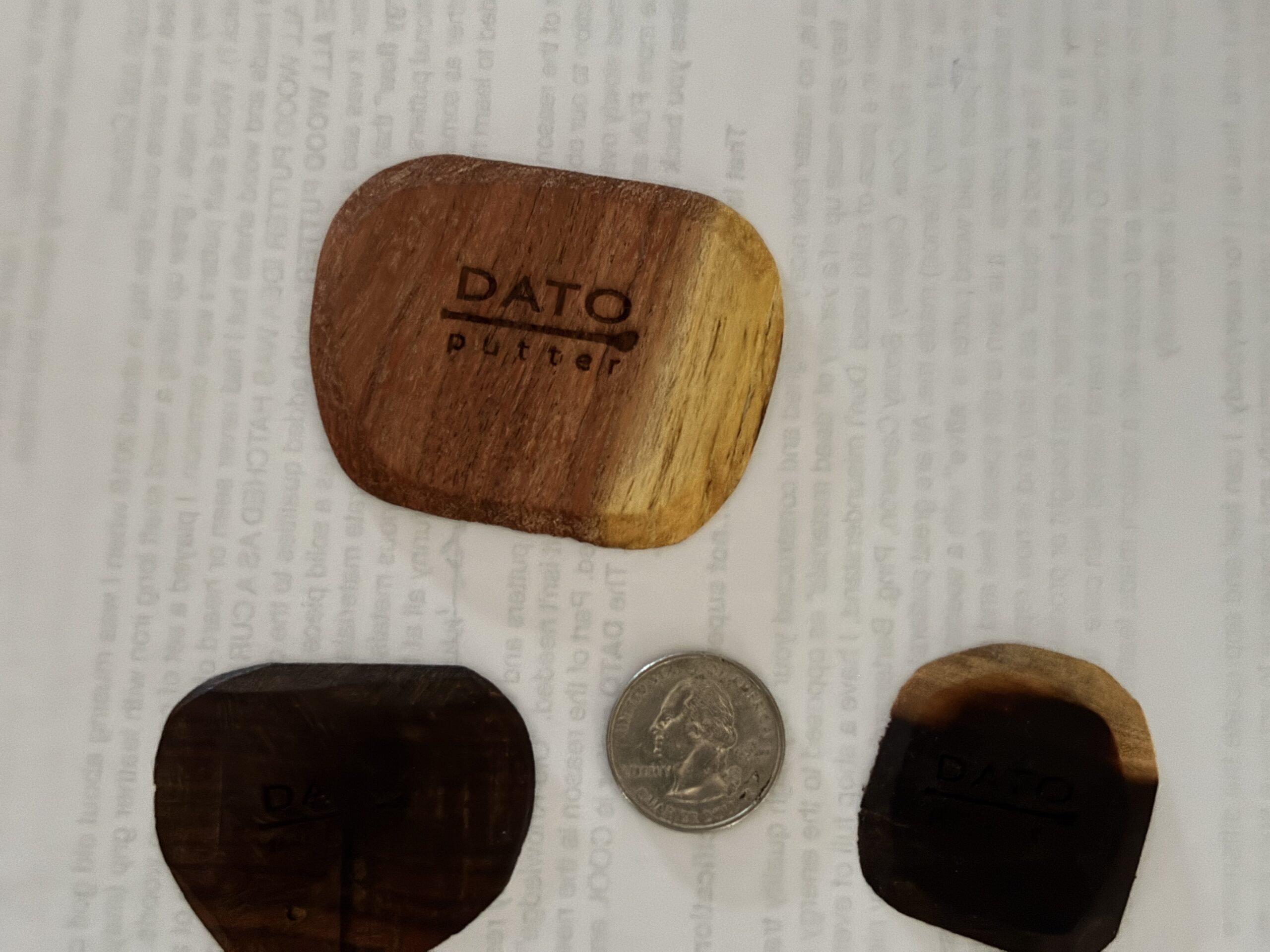 It is not made from lumber; not bought or processed. No living tree was harmed and it is not kiln dried. DATO putters are hand crafted with care, tool marks remain visible. Each putter can be personalized and comes with a custom made leather case and head cover. Like I said, this isn’t for everybody. I can feel and appreciate the difference. Maybe you can too! Each piece offers unique opportunity and challenge to achieve specifications that are correct for a great putter.